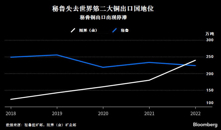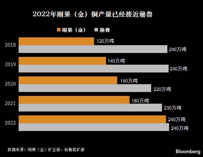 最近的一份報告認為,未來幾年,由于秘魯產量停滯,剛果(金)將占據全球第二大產銅國的位置。鄰國智利仍然是世界最大銅生產國和供應國。彭博通訊社報道,2022年剛果(金)銅出口量為240萬噸,而秘魯銅出口量為220萬噸。