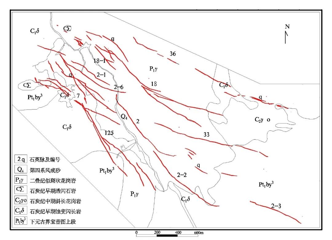 圖古日格金礦西礦區礦脈分布圖